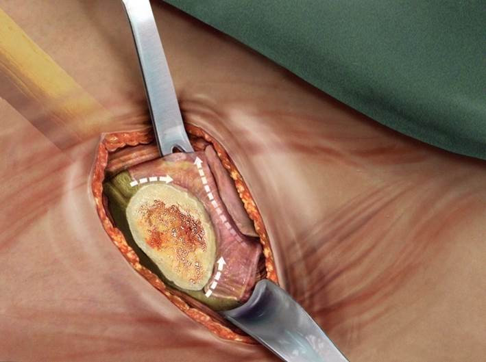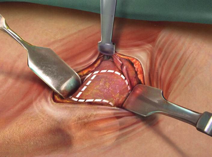 Wir wenden ausschließlich ein minimalinvasives operatives Vorgehen an bei dem sorgfältig darauf geachtet wird, die hüftumgreifende Muskulatur nicht zu schädigen. Die Hüftendoprothese wird über eine schon vorhandene Muskellücke unter Verwendung von speziellen Instrumenten eingebracht.