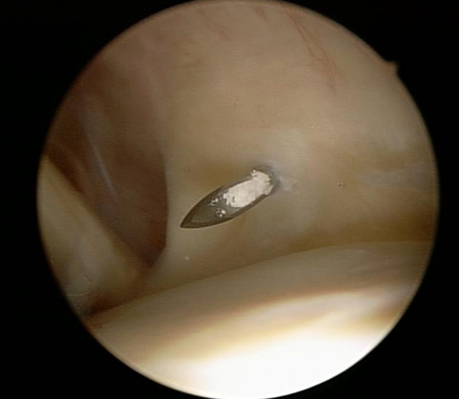 Die Kalkschulter (Bild 1) wird, wenn alle konservativen Methoden keine Linderung gebracht haben, in der Regel über eine Gelenkspiegelung (Arthroskopie) behandelt.